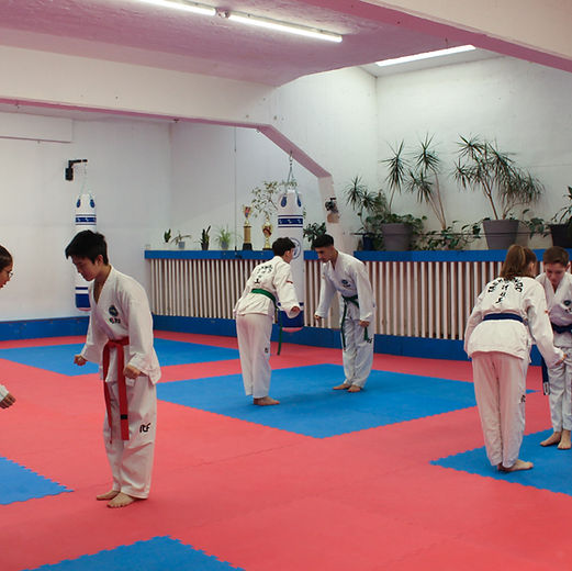 Taekwon-Do (TKD) ist eine traditionelle koreanische Kampfkunst, deren Ursprünge sich über Jahrhunderte entwickelt haben. Diese Kampfkunst wurde von General Choi Hong Hi geprägt, der verschiedene Stile aus verschiedenen Regionen Koreas miteinander vereinte. Nach der offiziellen Gründung des Taekwon-Do haben sich verschiedene Richtungen entwickelt, was zur Entstehung mehrerer Verbände führte. Zu den größten gehören die International Taekwon-Do Federation (ITF) und die World Taekwon-Do (WT). Unser Verein betreibt ITF Taekwon-Do. Im ITF Taekwon-Do gibt es verschiedene Disziplinen, die vergleichbar mit Schulfächern in der Schule sind. Eine bedeutende Disziplin ist die Tul, auch bekannt als der "Kampf gegen imaginäre Gegner*innen". Hierbei sind die Techniken vordefiniert und erfordern Körperbeherrschung und Koordination. Weitere Disziplinen, die mit einemeiner Partnerin ausgeführt werden, sind Vorbereitungsübungen und -techniken für direkte Selbstverteidigungshandlungen sowie die Selbstverteidigung selbst. Die Disziplin des "Freikampfs", genannt Chayu Matsogi, ähnelt dem Kickboxen. Eine weitere populäre Disziplin sind die Bruchtests, darunter der Kraftbruchtest und der Spezialbruchtest. Beim Kraftbruchtest liegt der Fokus auf der Erzeugung von Kraft auf einen bestimmten Punkt, während der Spezialbruchtest mehr auf Technik und Sprungleistung ausgerichtet ist. Taekwon-Do ist eine koreanische Kampfkunst, die sich über Jahrhunderte entwickelt hat und von General Choi Hong Hi geprägt wurde. Wir betreiben ITF Taekwon-Do und bieten verschiedene Disziplinen wie Tul (Kampf gegen imaginäre Gegner*innen) sowie Vorbereitungsübungen und -techniken für Selbstverteidigung an. Unsere Ausbildung erfolgt strukturiert und bietet Raum für individuelle Entwicklung, bevor das Sparring eingeführt wird. ​
